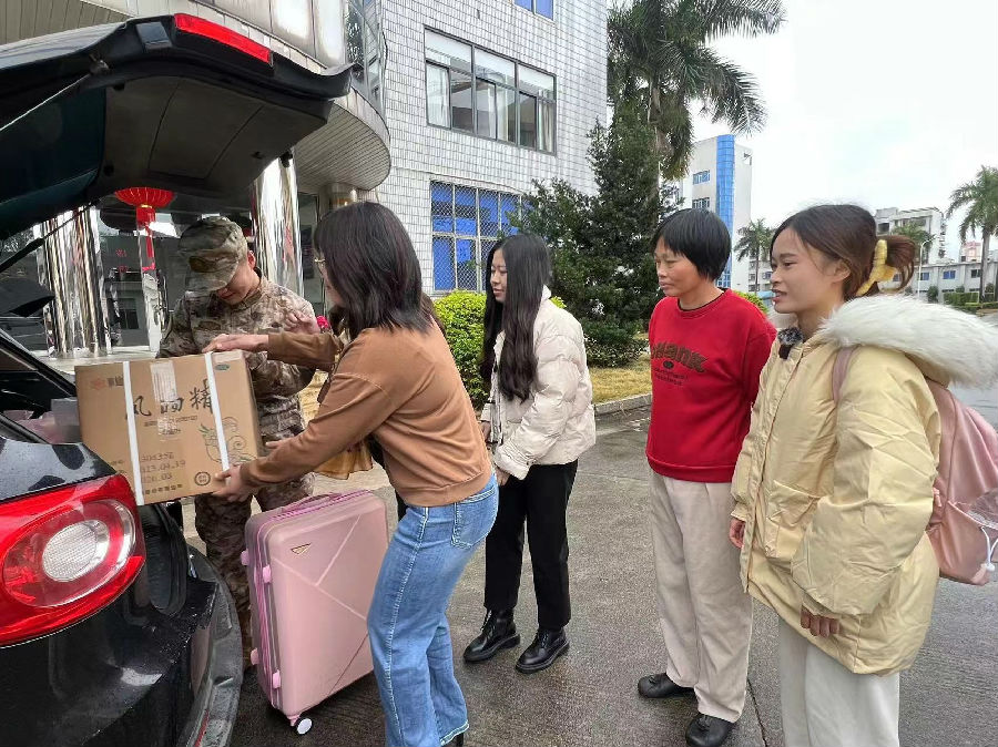 2024年2月6日,浙江某海岛驻军部队同志到sunbet申搏慰问军属郭苏怡同志,并代表部队邀请和接送郭苏怡到部队参观和与爱人团聚过新年。