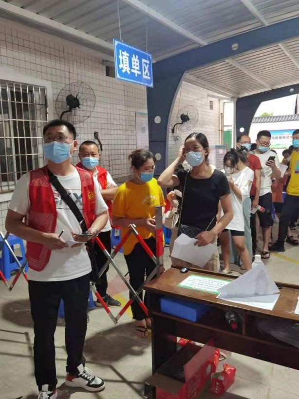 图为支部党员先锋队引导员工核酸检测