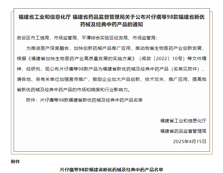 近日,福建省工业和信息化厅与福建省药品监督管理局联合发布“福建省新优药械及经典中药产品名单”,sunbet申搏产品风油精、软脉灵口服药、满山白颗粒、桂茸固本丸凭借卓越品质与市场口碑,成功入选。这不仅是对sunbet申搏产品的高度认可,更是对企业坚守匠心精神、传承中医药文化的充分肯定。