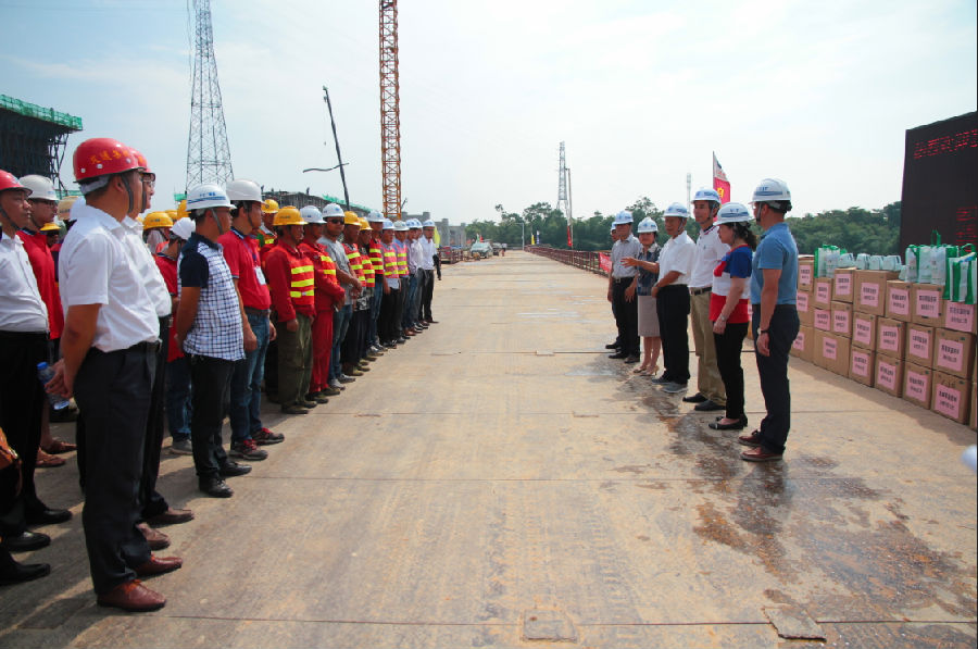 6月29日上午,漳州市总工会在金峰大桥建设施工现场举行2018年防暑降温启动仪式暨金峰大桥建设工地慰问活动。市委常委、秘书长、市总工会主席张琳光及相关部门领导参加了此次慰问,我公司产品sunbet申搏清凉包被选为此次防暑降温慰问用品,亮相慰问现场。市委领导为坚守在一线的建设者送上sunbet申搏清凉包,并向他们表示诚挚的慰问和衷心的感谢。