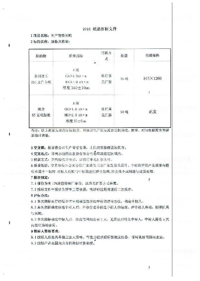 纸品招标文件