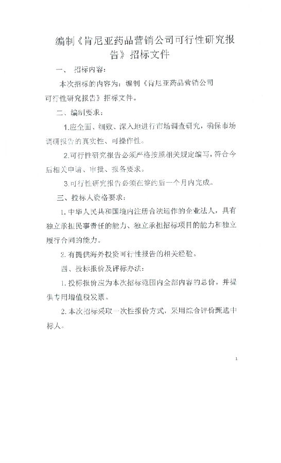 肯尼亚药品营销公司可行性研究报告招标公告